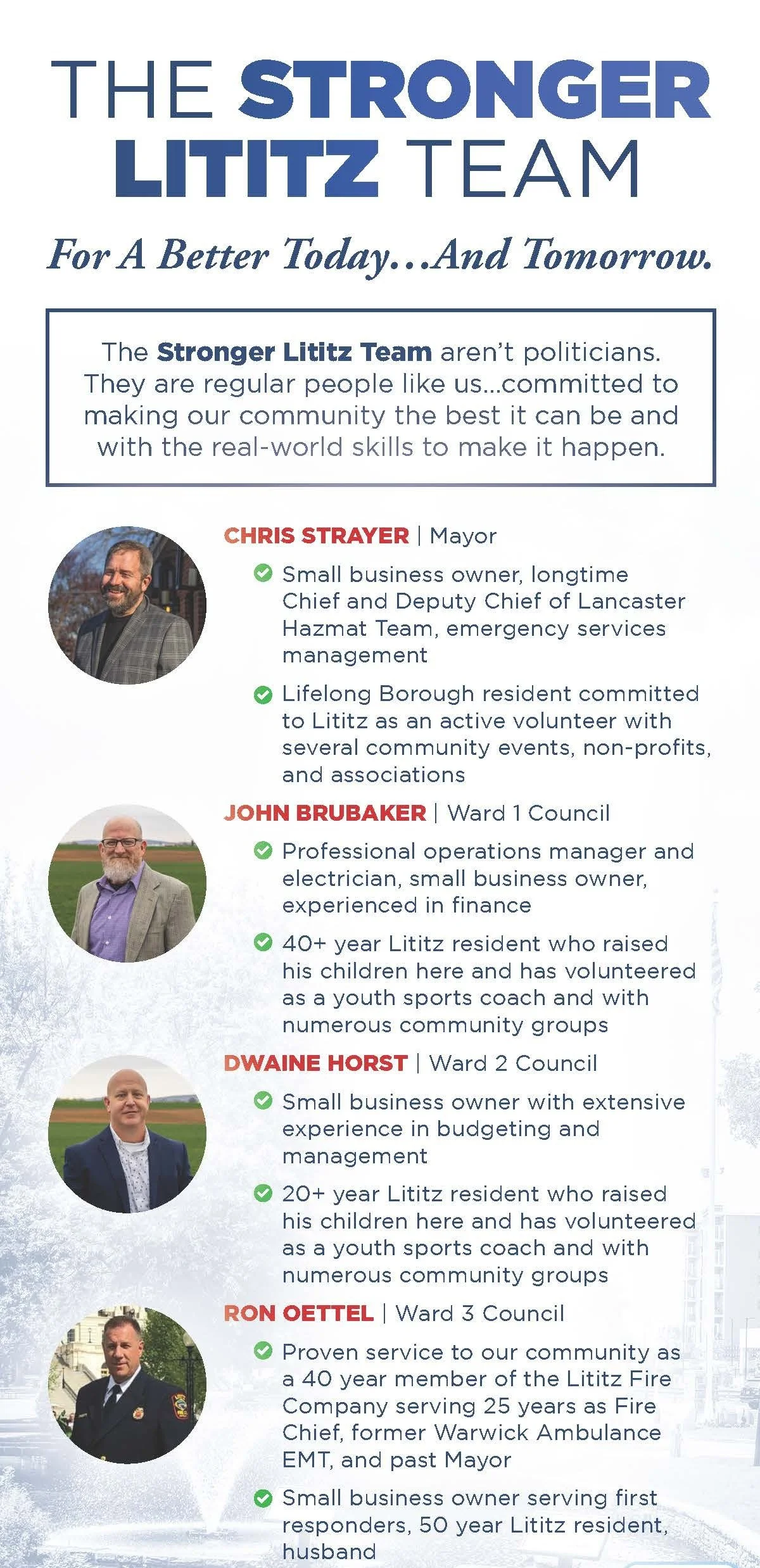 Meet your 2025 Warwick Area Republican Committee endorsed Lititz Borough Mayoral and Council candidates!